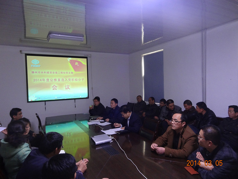 為切實增強(qiáng)黨建工作水平,加強(qiáng)黨組織活動能力,建設(shè)高素質(zhì)黨員隊伍,實現(xiàn)工程處跨越式發(fā)展目標(biāo),充分實行擴(kuò)大黨內(nèi)民主,提高黨員發(fā)展的透明度,按照市委組織部及局黨委統(tǒng)一部署,3月5日下午,市水利建安工程處黨支部組織召開2014年度公推直選入黨積極分子會議,全體黨員及部分群眾代表參加了會議。